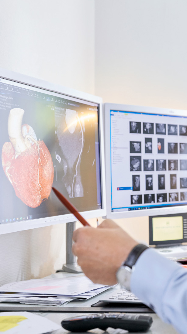 Ob Laboranalyse, Ultraschall, CT oder MRT – unsere technische Ausstattung entspricht den höchsten Standards. Der Vorteil unseres Hauses ist, dass sich die Fachabteilungen und die Radiologie in einem Hause befinden und unser gesamtes Team Hand in Hand zusammenarbeitet. Das ermöglicht es uns die Befunde und Diagnosen äußerst präzise zu stellen und die richtigen Schritte schnell einzuleiten. Für den Patienten ist der Ablauf effizient, die Wege und Wartezeiten sind kurz und alles kommt aus einer Hand – auf Hightech-Niveau, mit dem gebündelten Know-how der gesamten Klinik.