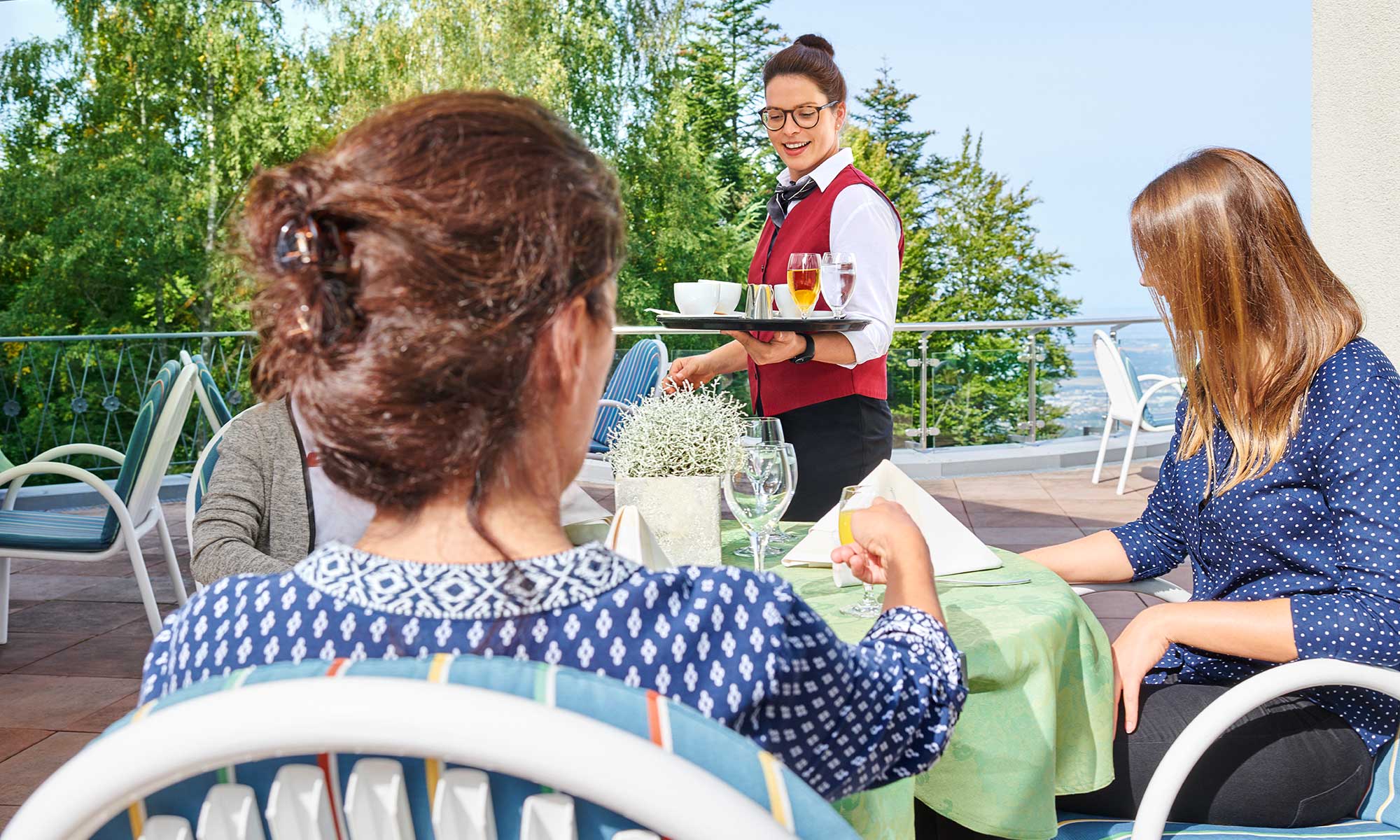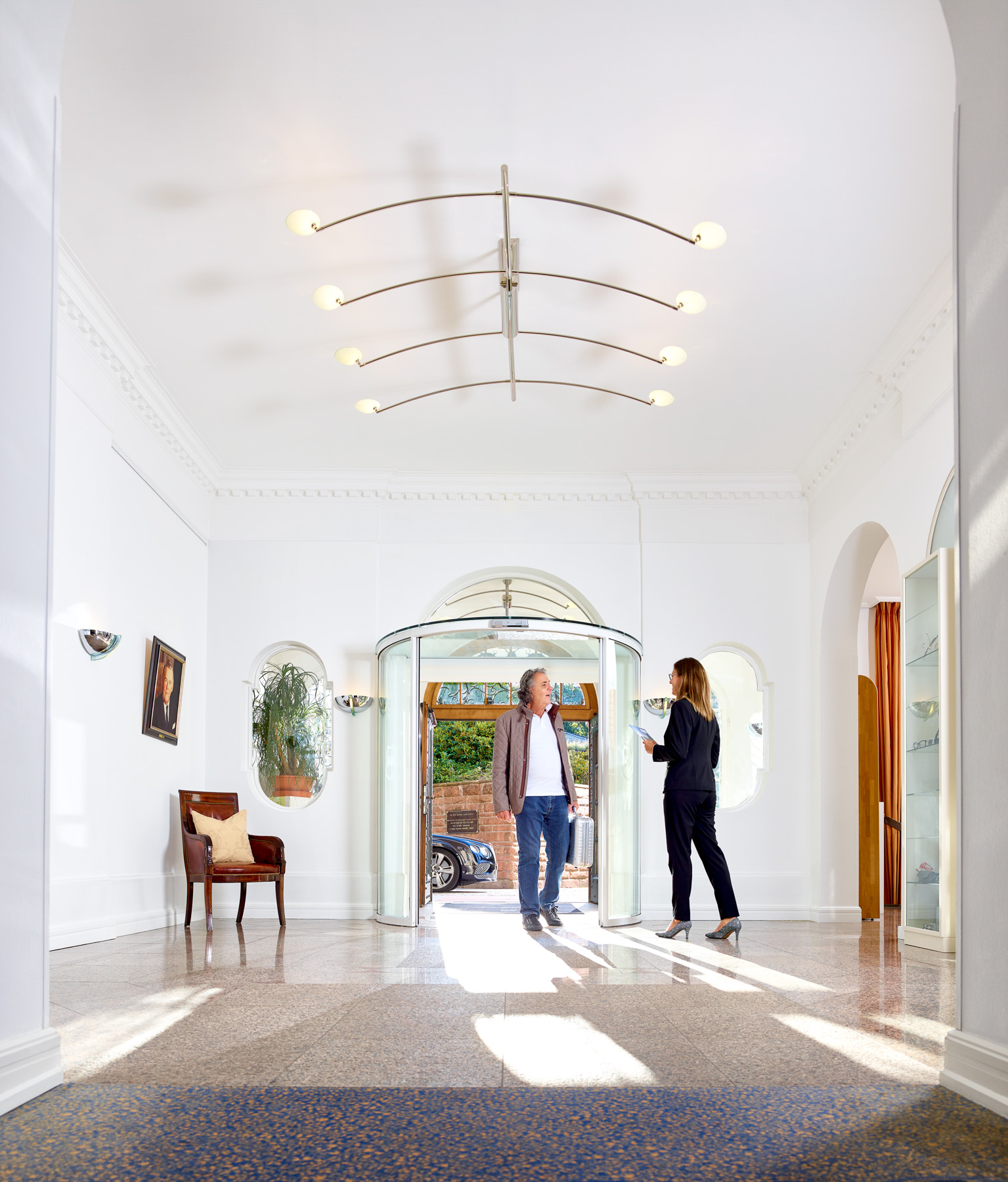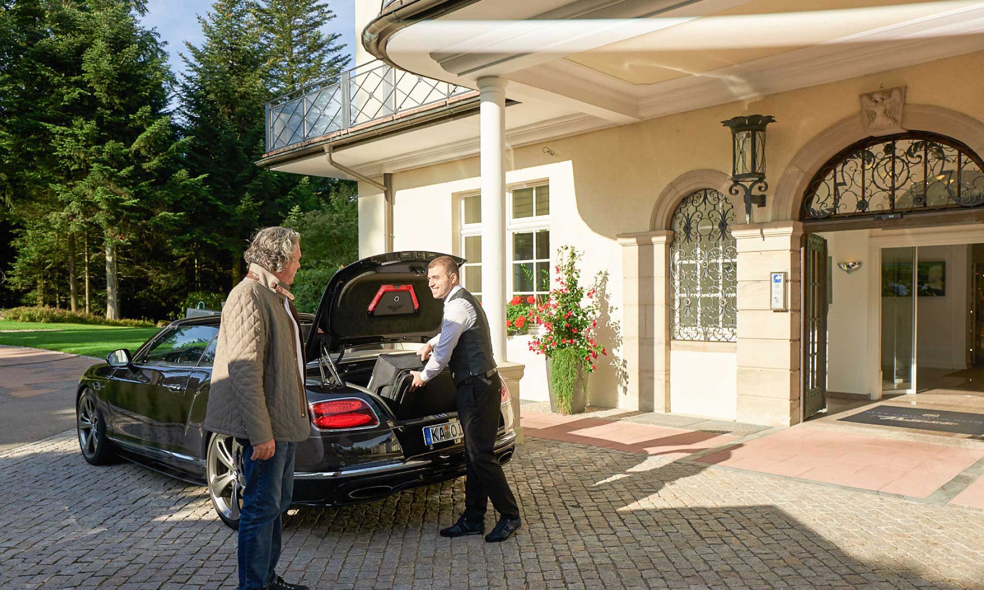 Sie checken ein, dann übernehmen wir – zunächst Ihr Gepäck, das wir für Sie aufs Zimmer bringen. Und das wir bei Ihrer Abfahrt natürlich auch wieder in Ihrem Auto verstauen.