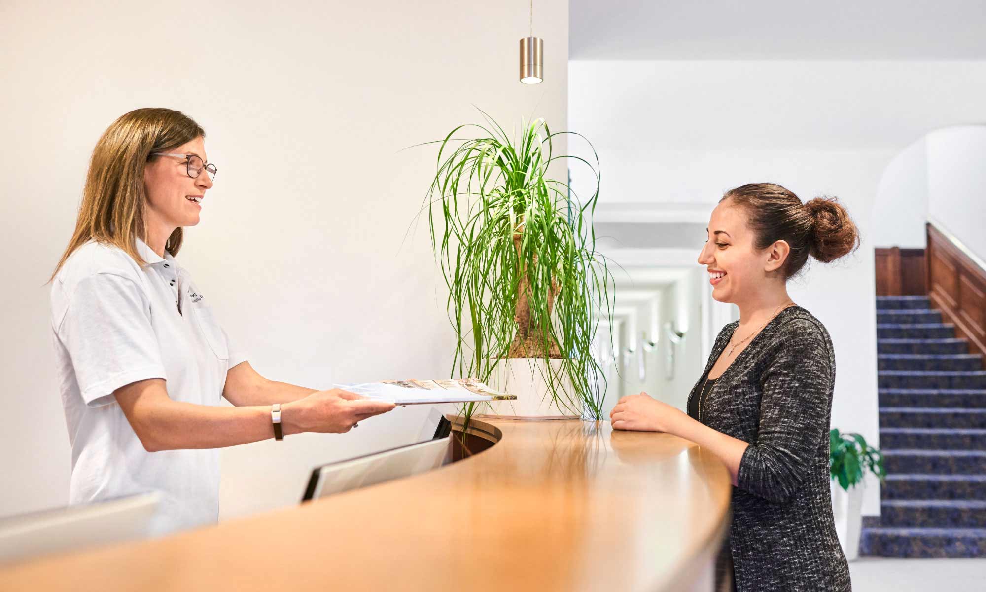 „Was kann ich für Sie tun?“ – Unsere Rezeption ist Ihr erster Ansprechpartner bei Wünschen jeglicher Art. Sprechen Sie uns jederzeit an, es wird alles in Bewegung gesetzt, um Ihnen weiterzuhelfen.