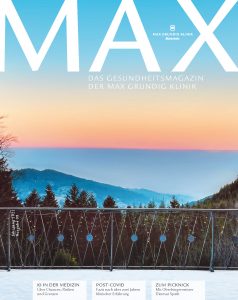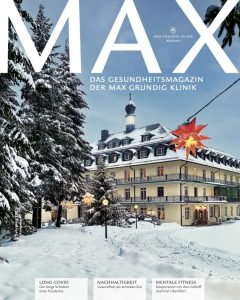 Das MAX-Magazin – lesen, was rund um die Gesundheit passiert und wichtig ist. Hier steht der Mensch – wie auch sonst in der Max Grundig Klinik – im Mittelpunkt. Informative Antworten auf Ihre Fragen von unseren MAX-Experten und spannende Reportagen. Zudem gibt es viele spannende Themen rund um Ernährung, Fitness, Heimat, Kultur, Max Grundig, und vielem mehr zu entdecken.